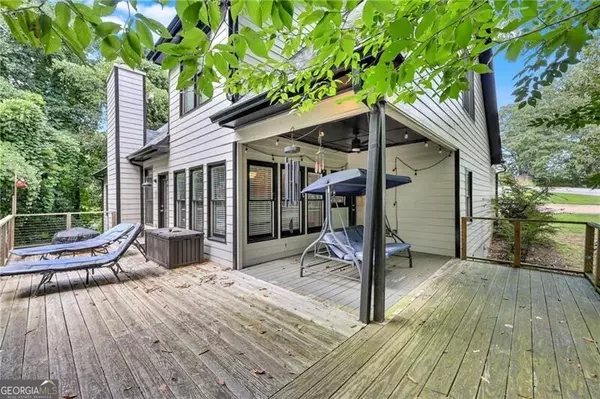 Lake Lanier retreat near the Olympic Park & Boathouse on a very private, acre plus lot, not in subdivision. This well-maintained home (with a brand new roof) offers an open floor plan with a 2-story foyer opening to a great room with stone fireplace, tall ceilings, beautiful columns and hardwood floors. The main-level owner's suite has trey ceilings and features a spa-like bath with deep whirlpool soaking tub and walk-in closet. The daylight terrace level includes a family room, flex space that's perfect for a media room or an office, full bath, and also abundant storage. Outdoor living space offers a covered grilling area, wrap-around deck, and serene wooded views. Enjoy a leisurely walk to the single-slip dock in a quiet, deep-water cove just off the Chattahoochee River channel. Ideal for full-time or weekend lake living-no HOA, no restrictions, just lake life at its best! ATV in the garage conveys with property for easier access to water. Incredible location on the lake and super close to shopping, restaurants and hospital.